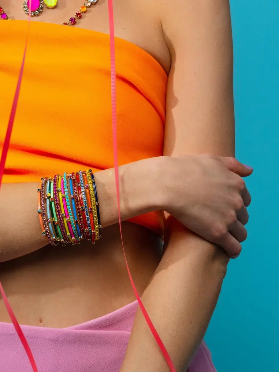 The Atlas Cuff is the perfect statement piece to light up any look. Crafted with high quality brass and gold plating, this classic accessory is adorned with sparkling crystals, hand-painted enamel, and made with love in Canada. Spruce up any outfit with the Everly Cuff and say goodbye to dull style!