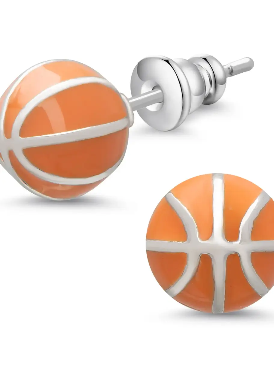 These beautiful stud earrings feature 3D basketballs with silver plating and enamel. Stainless steel posts secure with bullet clutch clasp.
