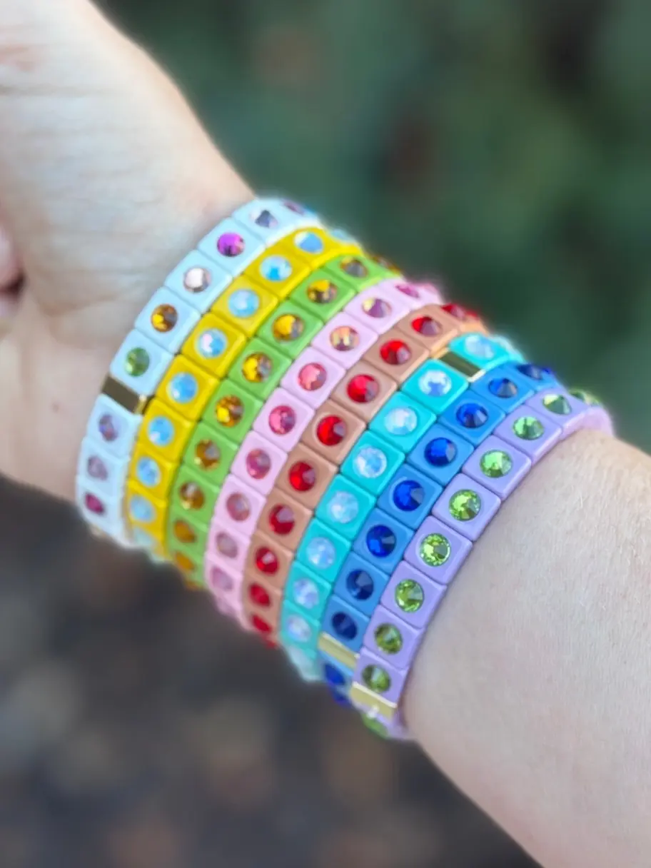 Brighten up your inventory with these stretch bracelets, where charm meets versatility! Perfect for stacking or wearing solo, these colorful enamel and stone bracelets are the ultimate accessory to add sparkle to any outfit.